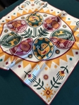 Хустка “Писанки” складається з елементів традиційного українського писанкарства: Лемківських писанок, дерева життя, пташок, оленів та рослинних переплетень. В основі композиції - сонце, яке символізує життєву енергію, відродження в природі, процвітання.