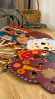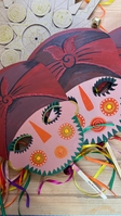 Маска Баби, мальована акрилом з двп на дерев'яній паличці +стрічки та дзвіночок.