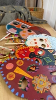 Маска Чорта, мальована акрилом з двп на дерев'яній паличці +стрічки та дзвіночок.