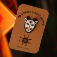 Металевий значок у формі кози, створений за ескізом нашої авторської маски «Коза», чудово тримається на одязі, рюкзаку, кепці або сумці завдяки надійній защіпці.
